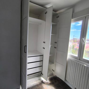 En Manitas fix el precio del montaje de un armario PAX Ikea es de media, alrededor de 40€ por estructura, dependiendo de la cantidad de artículos de complemento, como cajones, balda, percheros, zapateros, puertas, etc.