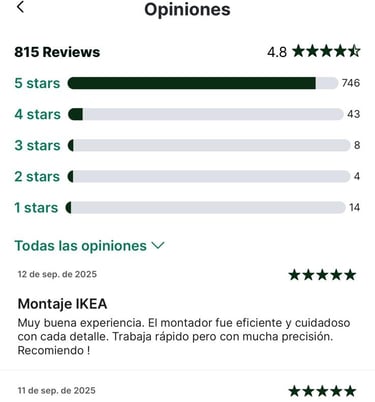 Más de 800 Reseñas Reales en la Plataforma Taskrabbit-IKEA